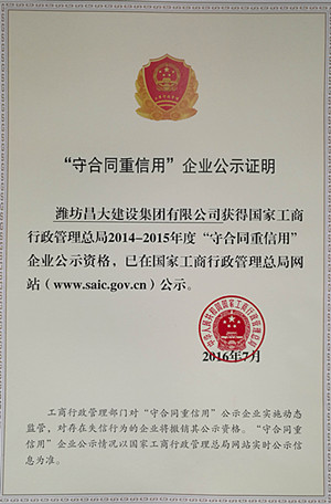 &According to the information provided by the market development department, recently, the group company obtained the publicity qualification of "contract abiding and trustworthy enterprise" at the national level, which will be valid until July 2018.     The publicity of state-level "contract abiding and credit abiding" enterprises is an enterprise contract credit assessment and evaluation activity organized by the State Administration for Industry and commerce, an institution directly under the State Council. The assessment and evaluation system includes enterprise contract signing and performance, enterprise credit management, brand operation and construction such as intellectual property certificate, enterprise economic benefits, public welfare donation and other corporate social responsibilities Wait. The declaration and publicity process is applied by the enterprise, reviewed jointly by the internal departments of the Municipal Industrial and commercial departments, and inquired about the labor, tax, environmental protection, safety supervision, quality, finance, trial and other departments and authorities by letter. After calculating the relevant indicators according to the weight, the assessment score is automatically generated, and the provincial industrial and commercial administration department from the highest to the lowest of the assessment score of the declared enterprise recommends the best Finally, it will be approved and announced by the State Administration. &The national publicity activity of "contract abiding and trustworthy enterprises" is organized once every two years, and the publicity qualification is subject to dynamic management. It is reported that the evaluation basis of this publicity activity is the 2014-2015 enterprise data of the publicity enterprise. &Nbsp; & nbsp; the group company obtains the qualification of this publicity, which will play a positive role in further improving the social reputation of the group company and actively participating in the bidding of the project.