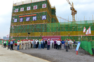 &On the morning of September 10, 2016, the main structure of zone a of the Junior High School Department of the nine-year consistent system Department of Qingdao middle school, which was constructed by Qingdao company of the group, took the lead in achieving the capping of all the opened projects, and the capping ceremony was held at 8:10 a.m. This day coincides with teacher's day. In this fruitful harvest season, Lord Chang presents a generous gift to teacher's day in his own way. Yan Peng, deputy general manager of the group, Yu Huixia, member of the Party Working Committee and deputy director of the Management Committee of Qingdao high tech Zone, LV Tao, member of the Party Working Committee and deputy director of the management committee, Pu Hongqiang, director of the Construction Bureau of Qingdao high tech Zone, Qin Jianyun, vice president of Beijing 11 University, executive president of Qingdao middle school and President of Qingdao experimental school, architectural design of Tongji University Gao Zengyuan, the project director of the Research Institute, and others jointly filled the capping concrete. Leaders and staff representatives of all departments, Group Qingdao company, installation company, decoration curtain wall company, second decoration curtain wall company, third decoration curtain wall company and all participating units of Qingdao middle school project attended the capping ceremony. &The total construction area of Qingdao middle school project is nearly 300000 square meters, including three main buildings: the Middle School Department (including the International Department), the nine-year consistent system department and the kindergarten department. Among them, Qingdao company undertook the nine-year consistent system department with a total construction area of 72074 square meters, which was officially started on April 19, 2016. According to the needs of the management committee and the Construction Bureau of the high tech Zone, the original 457 day contract period was reduced to 180 days, with tight time and heavy tasks. Since winning the bid, especially after the adjustment and compression of the contract period, Qingdao company has actively organized outstanding personnel to overcome many difficulties, such as the urgency of the construction period, the difficulty of the project construction, the construction in rainy season and the high temperature and hot summer, meticulously organized and strictly managed, strengthened the process control, and guaranteed the project quality and construction period. After the hard work of all the staff, the main body took the lead in capping on September 10, laying a solid foundation for the timely delivery and use of the project. Qingdao company shows Changda style in Qingdao market. &The construction part of the group took the lead in capping, only achieved a phased victory. The follow-up work volume of the project is large, the construction time is urgent, and it will face a more difficult test. Qingdao company will continue to adhere to the Changda style of being upright, working with determination, advancing in the face of difficulties, uniting and cooperating, overcome difficulties, ensure safety, quality and progress, work with a solid work style and the spirit of craftsman, work out a high-quality project, ensure that the project is delivered and used on schedule, and submit a satisfactory answer sheet to the owner.