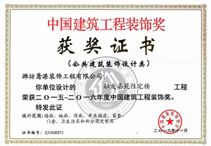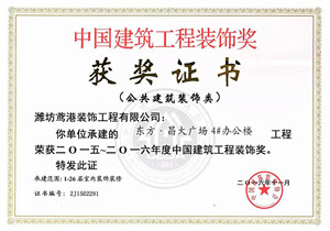 &On December 23, 2016, the 2015-2016 China Construction Engineering Decoration Award Ceremony was held in Beijing International Convention Center. The group won four more decoration awards, namely, the curtain wall decoration Award for the 4 × office building project of Dongfang Changda square constructed by the decoration curtain wall company, the Public Building Decoration Award for the 4 × office building of Dongfang Changda square constructed by the decoration company of iris port, the financial development Jiayuan residential building project constructed by the decoration company of iris port, the Public Building Decoration Award for the construction of the decoration company of iris port, and the Public Building Decoration Award for the construction of the decoration company of iris port The financial development Jiayuan residential building project also won the decoration award of public building decoration design. &China Architectural Engineering Decoration Award is the highest honor of the national architectural decoration industry, sponsored by China Architectural Decoration Association, which is evaluated annually and awarded every two years. The realization of four decoration awards in two years and one recognition cycle is the strength of "Changda decoration" brand, and also the realistic portrayal of the concept of "engineering excellence" and "building makes life better" gradually implemented by Weifang Changda construction group.