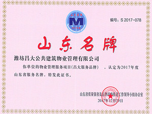 &Recently, the leading group office of Shandong Province, a leading province in quality and brand strategy promotion, released the 2017 Shandong famous brand, including Shandong famous brand products and Shandong Service famous brand. The Changda service brand of Weifang Changda Public Building Property Management Co., Ltd., a subsidiary of the group, was recognized as the service brand of Shandong Province in 2017. < br / > & nbsp; & nbsp; & nbsp; it is reported that the identification of famous brand products and service brands in Shandong Province is an activity to implement the new requirements of Shandong provincial Party committee and provincial government for quality and brand building in the new era and further promote supply side structural reform.