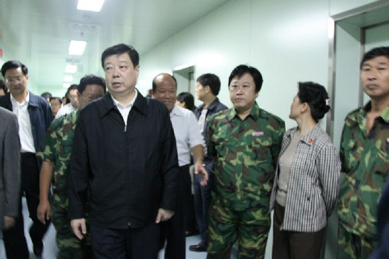 總經理朱九洲(右三)陪同省委書記姜異康視察援建北川人民醫院