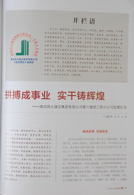 以下為《濰坊建筑》刊登昌大建設(shè)專業(yè)公司、專業(yè)人士系列報道: