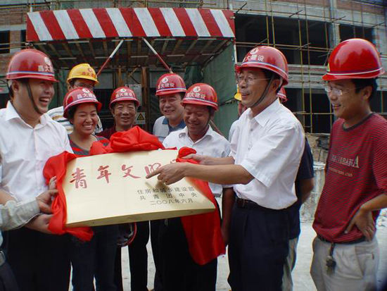 9月19日上午10時(shí)30分,為全國(guó)青年文明號(hào)——徐順福項(xiàng)目部舉行的揭牌儀式,在集團(tuán)公司總部辦公樓前舉行。 揭牌儀式由市建設(shè)局副局長(zhǎng)葛繼卿主持,山東省建設(shè)廳機(jī)關(guān)黨委常務(wù)副書記張普林,副書記金純龍,團(tuán)委書記辛平,科長(zhǎng)李學(xué)雷;共青團(tuán)濰坊市委副書記李強(qiáng);濰坊市建設(shè)局黨委副書記高峰;集團(tuán)公司總經(jīng)理、黨委副書記朱九洲,黨委副書記丁守起,監(jiān)事會(huì)主席、紀(jì)委書記滕忠斌等出席了揭牌儀式。 在今天的揭牌儀式上,由辛平宣讀住宅和城鄉(xiāng)建設(shè)部、共青團(tuán)中央的命名決定,全國(guó)青年文明號(hào)——徐順福項(xiàng)目部負(fù)責(zé)人徐順福做表態(tài)發(fā)言,高峰和張普林分別代表市建設(shè)局和省建設(shè)廳做了重要講話。 集團(tuán)公司總部人員,部分基層單位、子公司的代表,各基層單位團(tuán)組織代表,市建設(shè)局系統(tǒng)各單位團(tuán)組織負(fù)責(zé)人共200余人參加揭牌儀式。 濰坊電視臺(tái)、濰坊日?qǐng)?bào)社、濰坊人民廣播電臺(tái)、山東商報(bào)等多家媒體記者現(xiàn)場(chǎng)采集新聞。 榮獲全國(guó)青年文明號(hào)這一榮譽(yù),這在集團(tuán)公司的歷史上還是第一次。