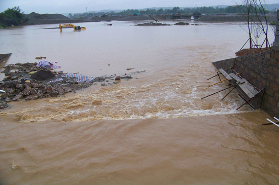 7月24日至25日,一場(chǎng)特大暴雨突襲北川新縣城,集團(tuán)公司援建的多處工地受到影響。至25日凌晨,職工宿舍、辦公室、食堂等地方進(jìn)水高達(dá)40cm,集團(tuán)公司的援川人員,特別是第八分公司的員工及時(shí)展開(kāi)自救。幾個(gè)小時(shí)內(nèi),大家先后將室內(nèi)的物品轉(zhuǎn)移到高處沒(méi)有進(jìn)水的房間,天一亮,指揮部便緊急組織工地?fù)岆U(xiǎn),大家分工協(xié)同,分別趕赴安昌河下游施工段和安昌河已驗(yàn)收河段查看受災(zāi)情況……由于指揮部早在20日就下達(dá)安昌河防防汛通知,各施工單位提前應(yīng)對(duì),從而保證在這次特大洪水來(lái)臨時(shí),所有施工人員安全撤離、所有材料轉(zhuǎn)移(由于汛情超過(guò)預(yù)想,第八分公司安昌河下游施工段景觀濕地形成了大面積積水致使一些土方機(jī)械過(guò)水)。此次洪水來(lái)襲,已竣工的安昌河段安然無(wú)恙,第八分公司正在施工的安昌河下游溢流堰、擋水堰已經(jīng)合攏,經(jīng)受住了洪水沖擊。