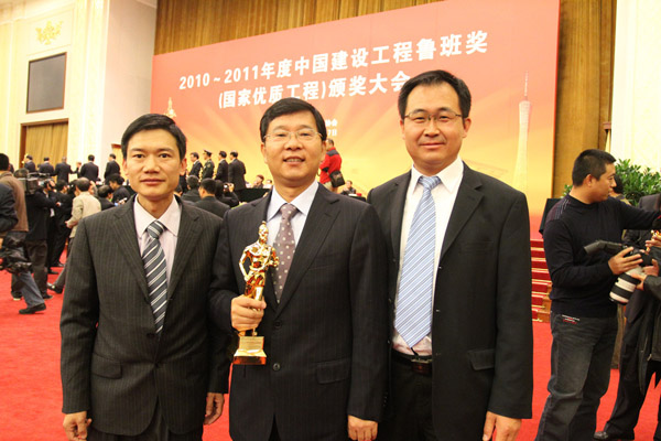 會上,集團公司還榮幸地作為授獎代表登上領(lǐng)獎臺接受了魯班獎證書和魯班金像。本次頒獎大會共通報表彰2010-2011年度的200個獲獎工程和750個承建、參建單位。