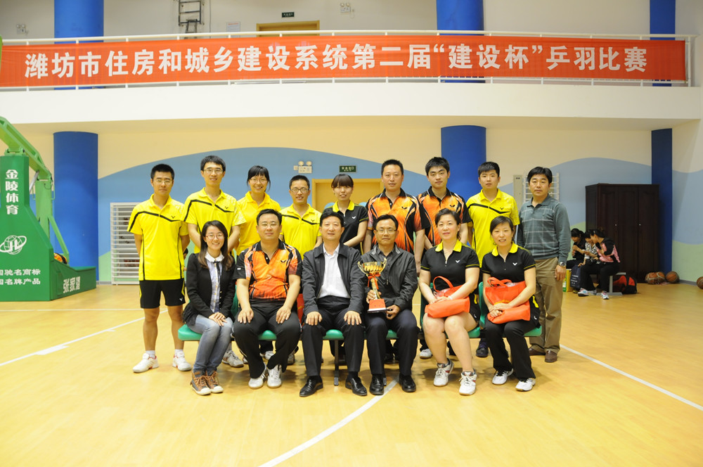 4月26日至28日,濰坊市建設(shè)系統(tǒng)迎“五一”第二屆“建設(shè)杯”乒羽比賽在濰坊藝術(shù)中心舉行,共有來自市建設(shè)系統(tǒng)的12支代表隊(duì)、百余名運(yùn)動員參加了乒乓球和羽毛球的比賽。集團(tuán)公司派出的乒羽代表隊(duì)獲得團(tuán)體總分第一名。4月28日下午,在藝術(shù)中心籃球館舉行了頒獎儀式和閉幕式,市建設(shè)局副局長李振龍、杜天斌出席閉幕式并為獲獎運(yùn)動員以及代表隊(duì)頒獎。集團(tuán)公司監(jiān)事會主席、黨委副書記、紀(jì)委書記滕忠斌參加閉幕式并代表集團(tuán)公司領(lǐng)取團(tuán)體比賽第一名獎杯。