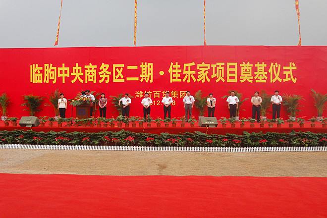 奠基儀式由臨朐縣委副書記殷修湖主持,濰坊百貨集團臨朐佳樂家置業(yè)公司總經理張珉介紹了項目的籌建情況,臨朐縣副縣長黃芳致辭。