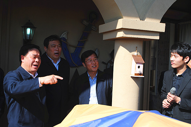 2012年10月18日上午,濰坊市委副書記、市長劉曙光在市政協副主席、市經信委主任李傳恒的陪同下,率領市發改委、市財政局、市規劃局、市旅游局等有關部門負責人到昌樂參觀調研卡納圣菲項目。昌樂縣委書記、縣人大常委會主任張新強,縣委副書記、縣長高立波陪同調研。集團董事長徐鵬強陪同劉曙光參觀調研并就項目開發情況作了匯報。