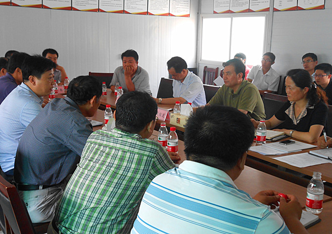 2013年8月6日下午,濰坊濱海經濟開發區黨工委副書記、管委會主任張恒道在濰坊濱海經濟開發區規劃局局長李冰、財政局局長宋美亮的陪同下,到集團第八分公司正在施工的濰坊濱海城市展覽館工程進行調研,集團公司總經理朱九洲、總工程師張連悅陪同調研。         在項目部會議室,張恒道聽取了施工單位、監理單位、建設單位工程建設情況匯報,對工程相關事宜進行了現場調度,以確保該工程按照計劃進行施工。濱海經濟開發區評審中心主任張樹欽、招投標中心主任王永光、規劃局副局長莊廷祥參加了調度會。   上圖為調度會現場