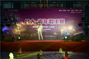 “青年歌王賽”決賽,作為此次晚會的主打節目,17名決賽選手引吭高歌、濃情投入、經典奉獻?!赌闶俏业难邸凤柡钋椋弧痘夜媚铩酚朴苾A訴;《好想大聲說愛你》、《直到世界盡頭》再燃童年記憶……翻唱、流行、經典在此演繹,角逐激烈。在現場,經專業評委打分,來自二公司的賈棟獲得“青年歌王賽”決賽一等獎,榮膺“青年歌王”稱號。來自四公司的毛志斌和第三裝飾幕墻公司的王鵬同獲二等獎。來自濰坊市政的孫崇敬、昌大建科的李琦、一公司的王一飛獲得三等獎。