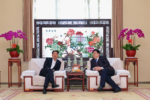 開工儀式前,集團總裁朱九洲、副總裁吳杰與華建鋁業集團董事長吳維光等在華建鋁業集團辦公樓進行了座談交流。