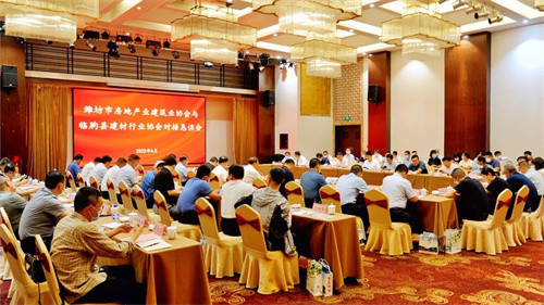 2022年6月11日,濰坊市房地產(chǎn)業(yè)協(xié)會、濰坊市建筑業(yè)協(xié)會與臨朐縣建材行業(yè)協(xié)會對接懇談會在臨朐縣攬翠湖酒店舉行。濰坊市建筑業(yè)發(fā)展服務(wù)中心副主任丁士剛,濰坊市房地產(chǎn)業(yè)協(xié)會會長、集團董事長徐鵬強,濰坊市建筑業(yè)協(xié)會會長、集團總工程師房海,臨朐縣委副書記、縣長陳誠,縣委常委、辦公室主任王磊,副縣長董樹華,市房協(xié)副會長單位和市建協(xié)副會長單位20余位負責(zé)人,臨朐縣相關(guān)部門負責(zé)人出席對接懇談會。