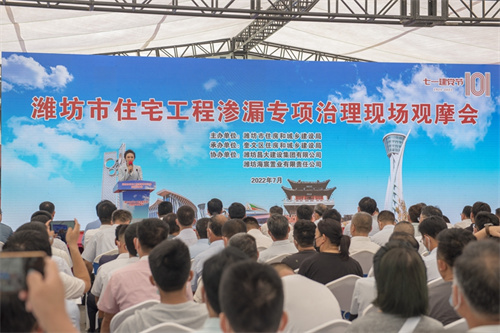 2022年7月1日上午,由濰坊市住建局組織的“濰坊市住宅工程滲漏專項(xiàng)治理”觀摩會在集團(tuán)二建公司總承包施工的海通恒信·鳶都名筑項(xiàng)目現(xiàn)場舉行。