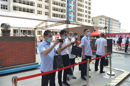 集團(tuán)總工程師房海、質(zhì)量技術(shù)部總經(jīng)理劉文、二建公司總經(jīng)理李建成參加觀摩活動。各縣市區(qū)住建局分管局長、建筑業(yè)發(fā)展中心主任、施工企業(yè)代表等200余人參加了上午的觀摩活動。