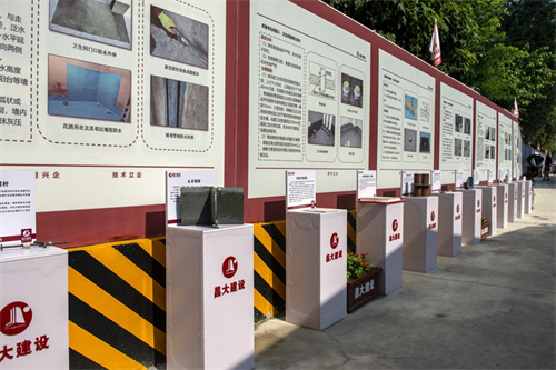 觀摩會現(xiàn)場,項(xiàng)目部人員結(jié)合現(xiàn)場樣板,對地下室、外墻、屋面及三小間防水做法和具體施工工藝向觀摩領(lǐng)導(dǎo)和嘉賓進(jìn)行了詳細(xì)講解。對于該項(xiàng)目的樣板做法,省住建廳和市級住建部門的領(lǐng)導(dǎo)與專家均給予了高度評價,并已掛省廳網(wǎng)站全省云觀摩,同時在全市范圍推廣應(yīng)用。