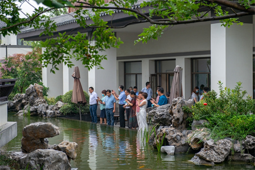 2022年7月6日,由濰坊市民政局社會組織培育中心組織的以“建設學習型協會、商會組織”為目的的第16期“訪名企、共發展”學習交流活動,走進昌大集團參觀交流。濰坊市民政局二級調研員李凡華率十四家協會、商會會長、秘書長出席了這次交流活動。集團公司監事會主席、紀委書記、工會主席穆乃杰全程陪同。 該第16期行業協會、商會諸位會長、秘書長在集團公司期間,先后參觀了集團企業展廳、建筑史館、黨建展廊、中頤龍湖康養小鎮,深入考察了解了集團公司的發展,對集團公司的良性發展給予充分充分肯定和高度評價。在中頤龍湖康養小鎮,生活服務總監孫玉闖陪同參觀了小鎮已交付的頤園組團、青龍湖公園、頤樂康養中心及頤養洋房樣板間并為大家做詳細講解,對康養小鎮規劃、建設、運營、康養服務理念及康養服務內容等方面有了深入的了解。