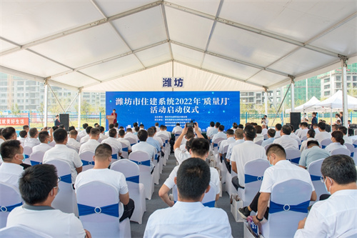 2022年9月1日上午,濰坊全市住建系統2022年“質量月”活動在濰坊市東方名著項目現場舉行啟動儀式,市住建局黨組書記、局長鐘光文出席活動,就本次活動提出相關要求,并與嘉賓一同按下開啟按鍵,拉開了2022年濰坊市“質量月”活動序幕。市住建局黨組成員、建筑業發展服務中心主任許增賢出席活動。集團公司總裁朱九洲出席啟動儀式并代表施工企業作表態發言。集團公司總工程師房海赴臨沂主會場參加活動并接受2021年度優質結構獎頒獎。 在今天濰坊“質量月”活動啟動儀式上,與會人員在現場通過網絡觀看了全省在臨沂主會場,主題為“推動質量變革創新、促進質量強國建設、建設品質工程、筑就美好生活”的質量月活動啟動儀式。在主會場儀式上,有主會場當地領導和省廳有關領導的致辭講話、有部署全省住建系統質量月活動安排、觀看《匠心筑夢質享未來》工程質量提升成果專題片、通報山東省近十年爭創魯班獎和國家優質工程獎情況、為2021年優質結構獎代表頒發證書、為“天元大工匠”代表頒發證書,建設、施工、勘察、設計、監理、檢測等行業代表宣讀關于落實工程質量的倡議書、各地市質量提升成果展示等等。在濰坊啟動儀式上,項目建設單位、總承包施工企業和監理企業代表作了表態發言。 濰坊各縣市、市屬各開發區住建局局長、建筑業中心主任或質量安全服務站站長;中心城區(奎文、濰城、坊子、寒亭、高新)監管機構質量監督人員代表;高新區工程項目建設單位、施工單位、監理單位代表 參加會議。 據悉,今年9月是全國第45個質量月。 本次活動還是加強了疫情管控,所有參會人員在近14天均不得途經中高風險地區和必須提供48小時核酸陰性證明。