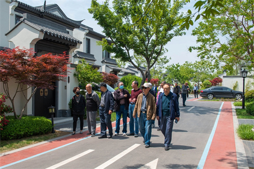 2023年5月10日,山東省住房城鄉建設廳機關離退休干部黨委書記、原一級巡視員孫松青一行36人來安丘開展“綠色生態,健康養生,助力發展”主題教育調研,參觀中頤龍湖康養小鎮。