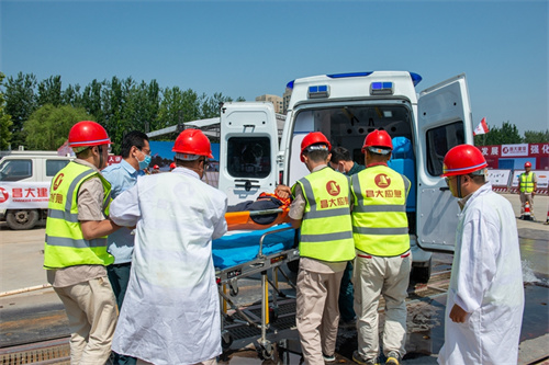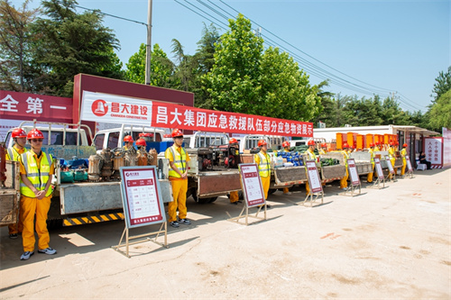 為配合此次演練,集團公司準備了部分應急救援物資,分別用8輛雙排卡車分類裝運,現場展示。集團應急救援隊也列隊現場,統一著裝,全程參與本次活動。