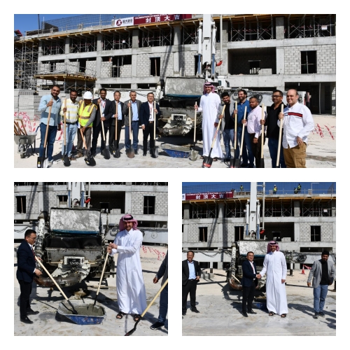 Salam 集團CEO Abdul Salam Abu Issa、項目業主代表Husam、EAS總監理工程師Abdelsami、昌大海外公司總經理張立志,副總經理馮金龍及主要參建人員出席儀式,共同見證3棟宿舍樓結構封頂。
