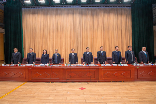 經過新一輪改造的工人文化宮穹頂璀璨、銀幕碧華。“振奮龍馬精神、實干再書華章,奮進圖強、團結拼搏,拓空間、增優勢,以大視野打開大格局!”的大幅標語催人奮發。上午九時,會議準時開幕。集團董事長徐鵬強、總裁朱九洲以及穆乃杰、姜建魯、吳杰、孟憲禮、房海、劉雁冰、惠守江、王建波等高管出席大會并在主席臺就座。集團公司第九屆職工代表、列席代表,集團公司中層管理人員、2023年度受表彰的先進集體代表和先進個人以及總部全體人員共319人參加大會。